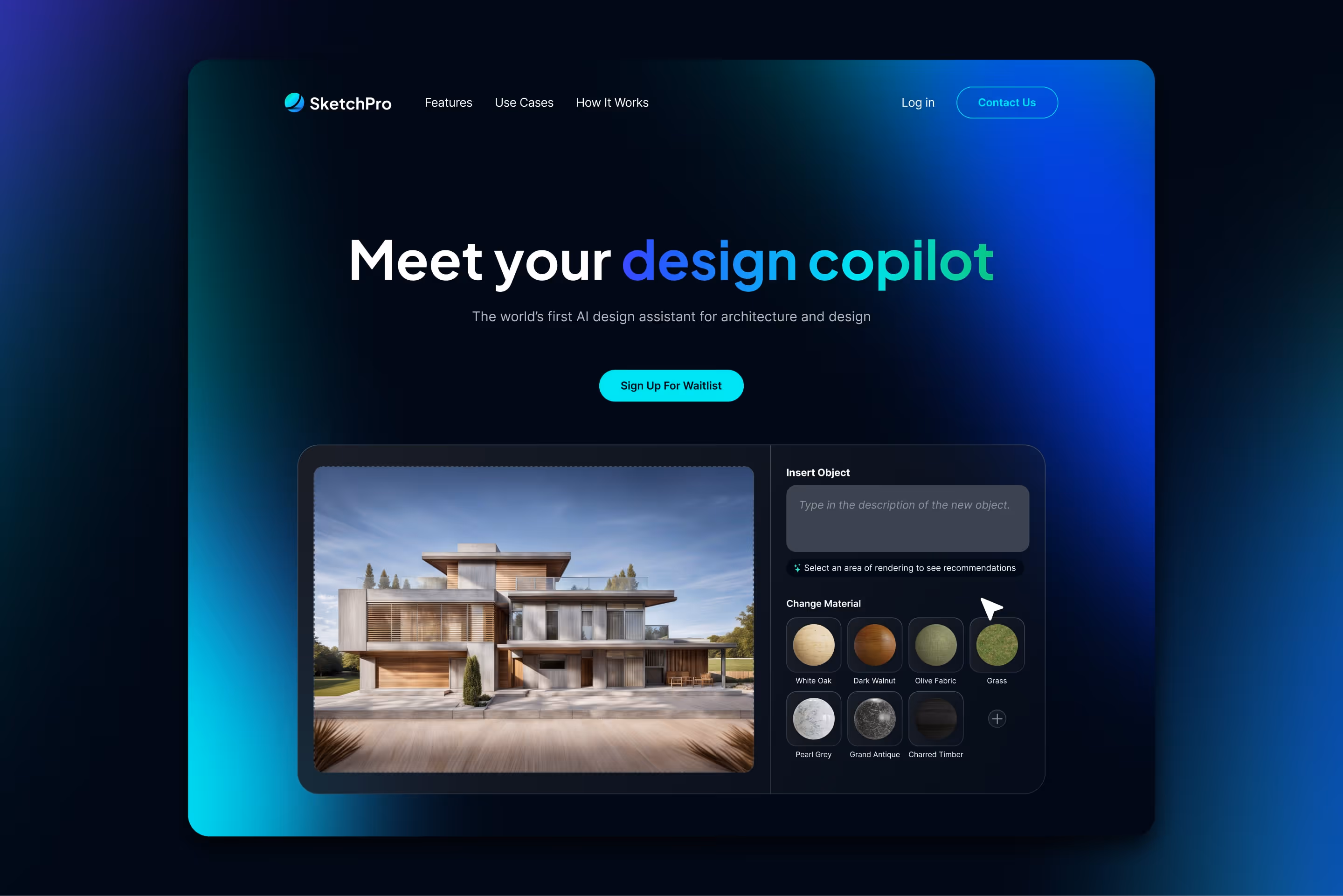 We worked with a large volume of stunning renders of interiors, exteriors, furniture, and architecture, knowing that the most compelling way to present the product would be through these renders and by demonstrating how easy it is to generate them.
